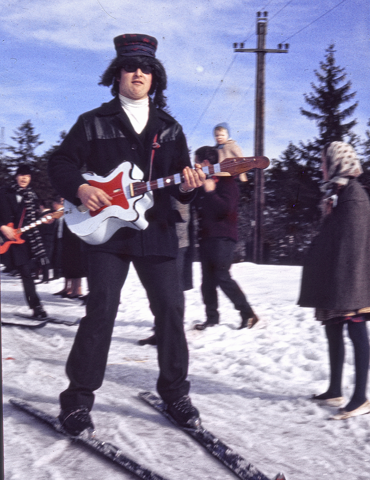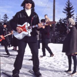 Weiter ging es mit Aufnahmen von historischen Matschgerern bis in das Jahr 1924 zurück als Edi Linser mit dem Motorrad auf das Lafatscherjoch „gebrettert“ ist. Fotos vom Salzberg und eine legendäre Open Air Blinddarmoperation auf Schiern in den 1970er Jahren (wieder im Fasching) rundeten den Rückblick ab. Einige der Besucherinnen und Besucher erkannten sich oder Verwandte auf den Fotos, was noch für viele Gespräche gesorgt hat.